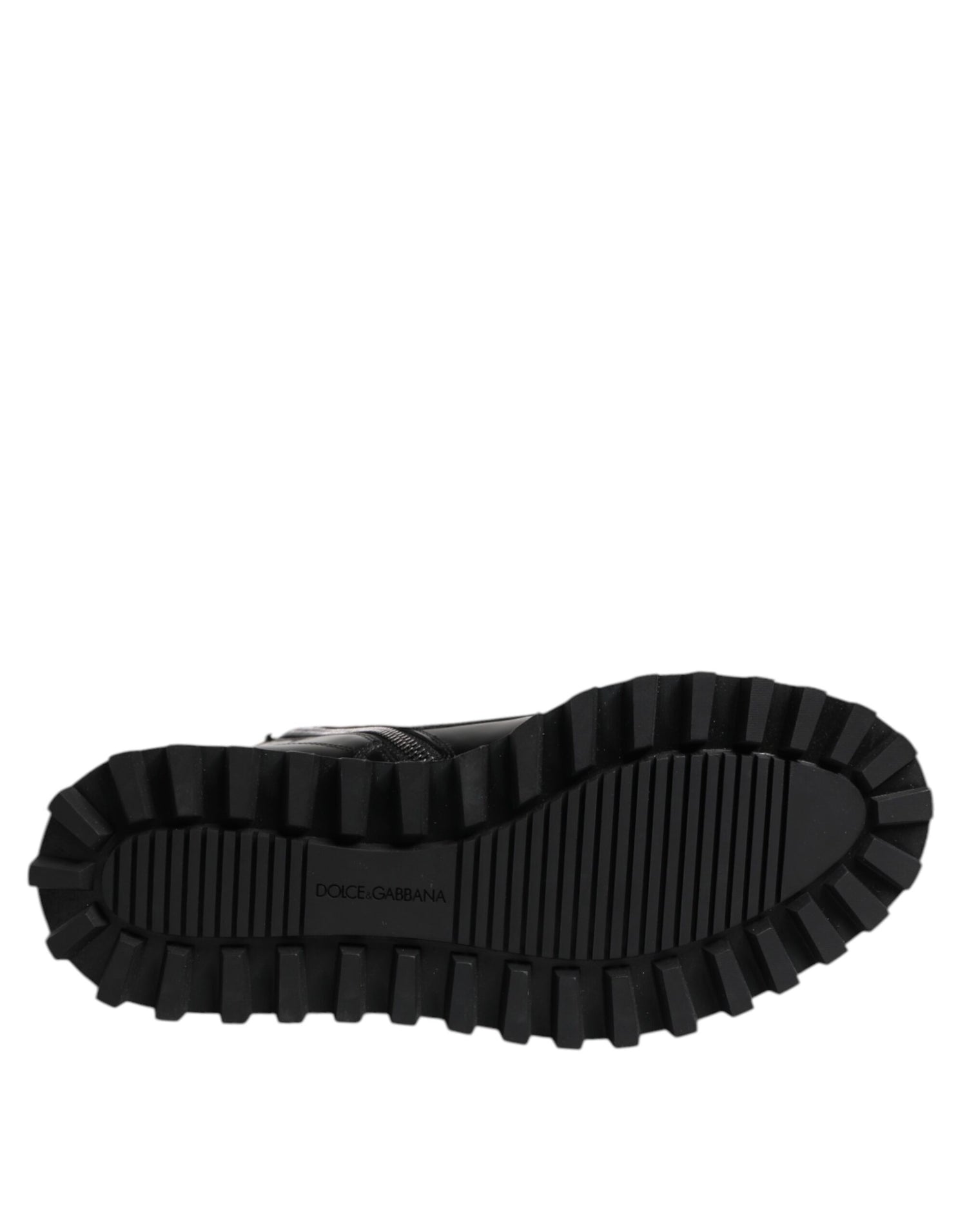 Dolce & Gabbana Black Leather Lace Up Mid Calf Boots Shoes