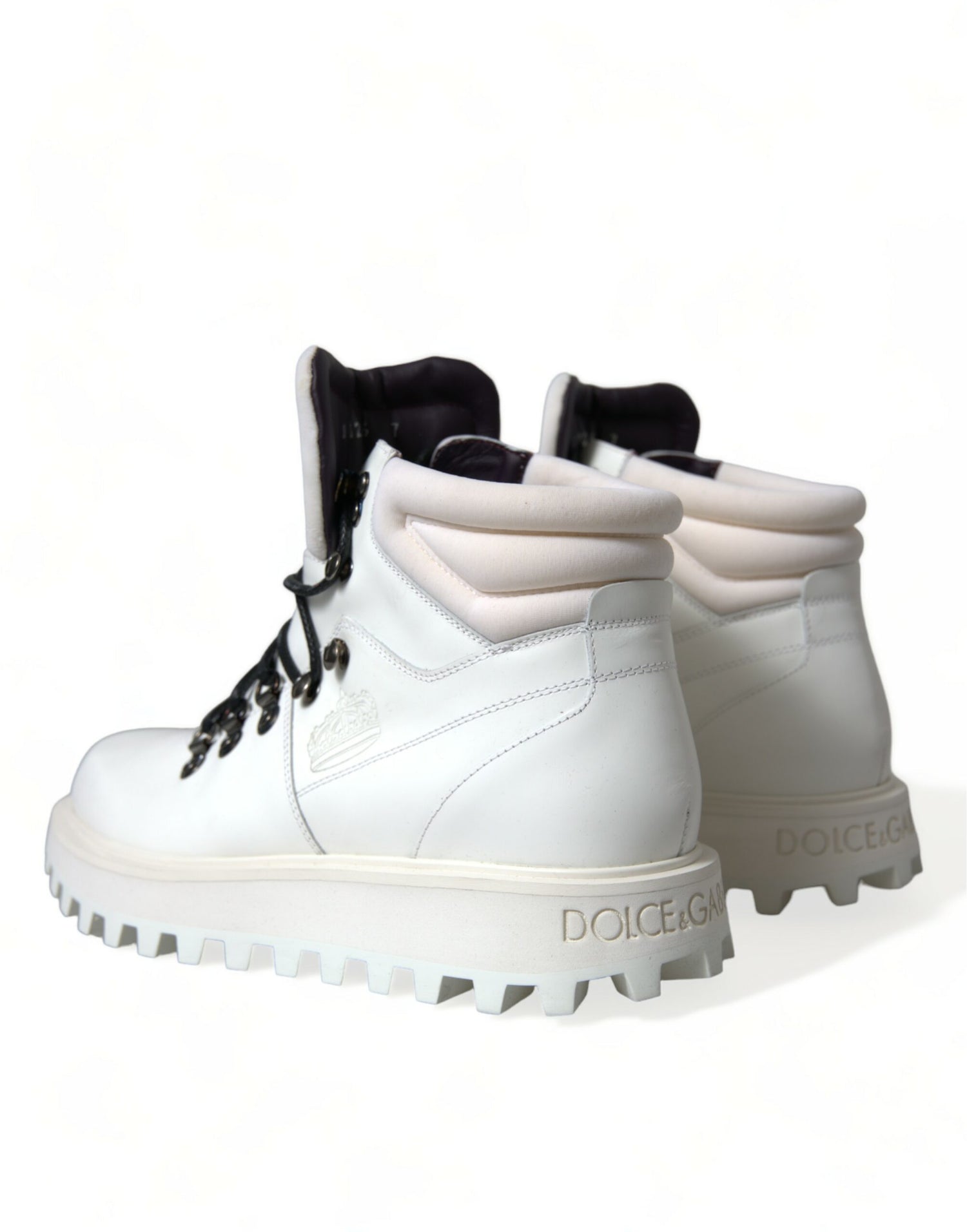 Dolce & Gabbana White Vulcano Trekking Ankle Boots Shoes