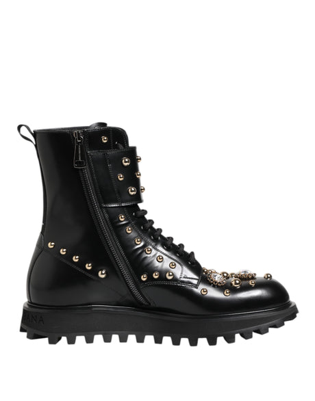 €948.20€1,177.00Grundpreis /Nicht verfügbarBegrenzter Vorrat (7 Einheiten)Dolce & Gabbana Black Studded Lace Up Mid Calf Boots Shoes