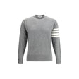 Fleece Wool Sweater by Thom Browne, ribbed crew neck, ribbed hem, ribbed cuffs, iconic brand contrast stripes on left arm, monochrome pattern, regular fit.