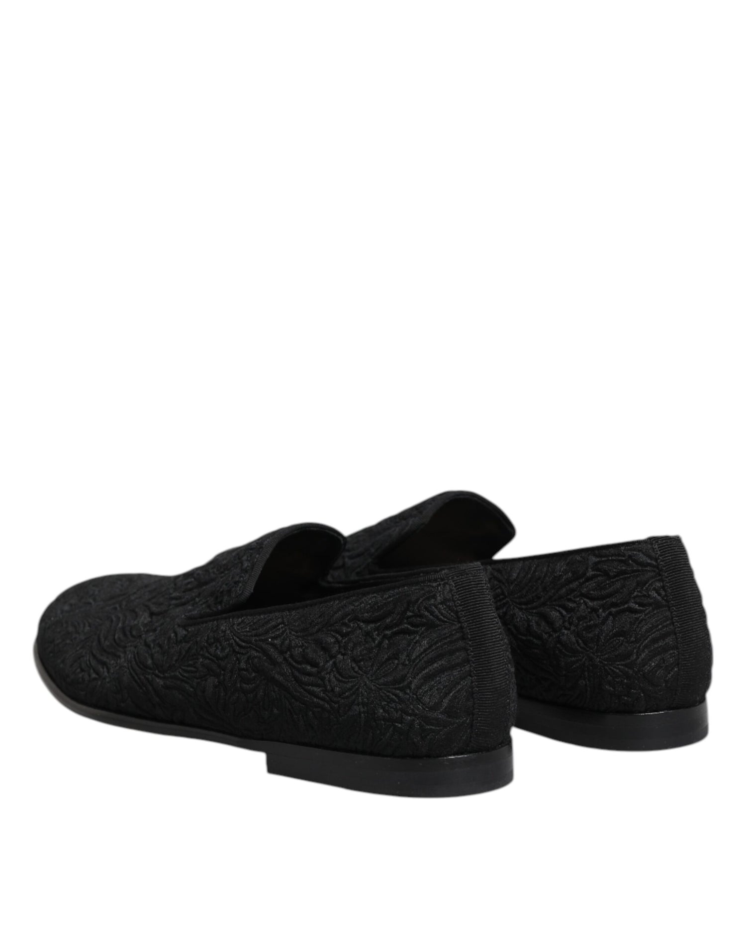 Dolce & Gabbana Black Jacquard Slip On Loafers Formal Shoes