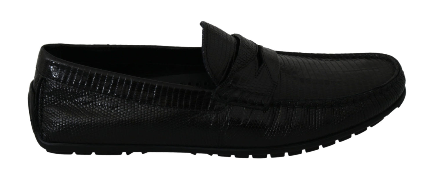 Dolce & Gabbana Black Lizard Leather Flat Loafers Shoes