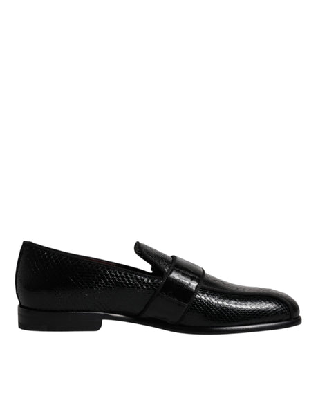 Dolce & Gabbana Black Exotic Leather DG Logo Loafers Formal Dress Shoes