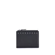 Valentino Garavani’s grained leather Rockstud Card Holder features a compact and sophisticated design. Featuring the iconic Rockstud studs applied on the front, it features a welt pocket with top zipper closure, ideal for storing coins or small items. The back panel features practical card slots, perfect for organizing essentials in style. An elegant and functional accessory, an expression of the maison’s distinctive aesthetic.