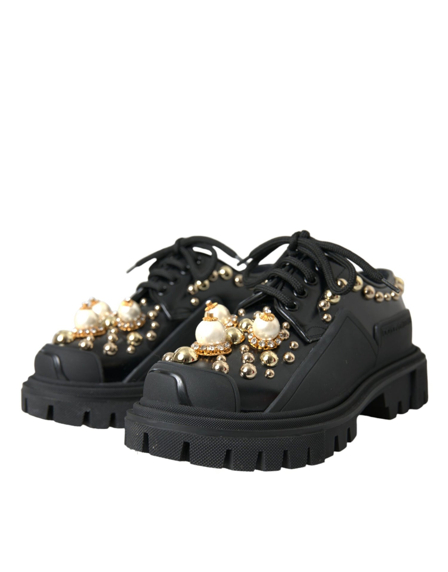 Dolce & Gabbana Black Leather Trekking Derby Embellished Shoes - EU35.5/US5 ist auf Lager und wird versandt, sobald es wieder verfügbar ist