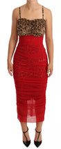 Dolce & Gabbana Brown Leopard Red Tulle Sheath Midi Dress