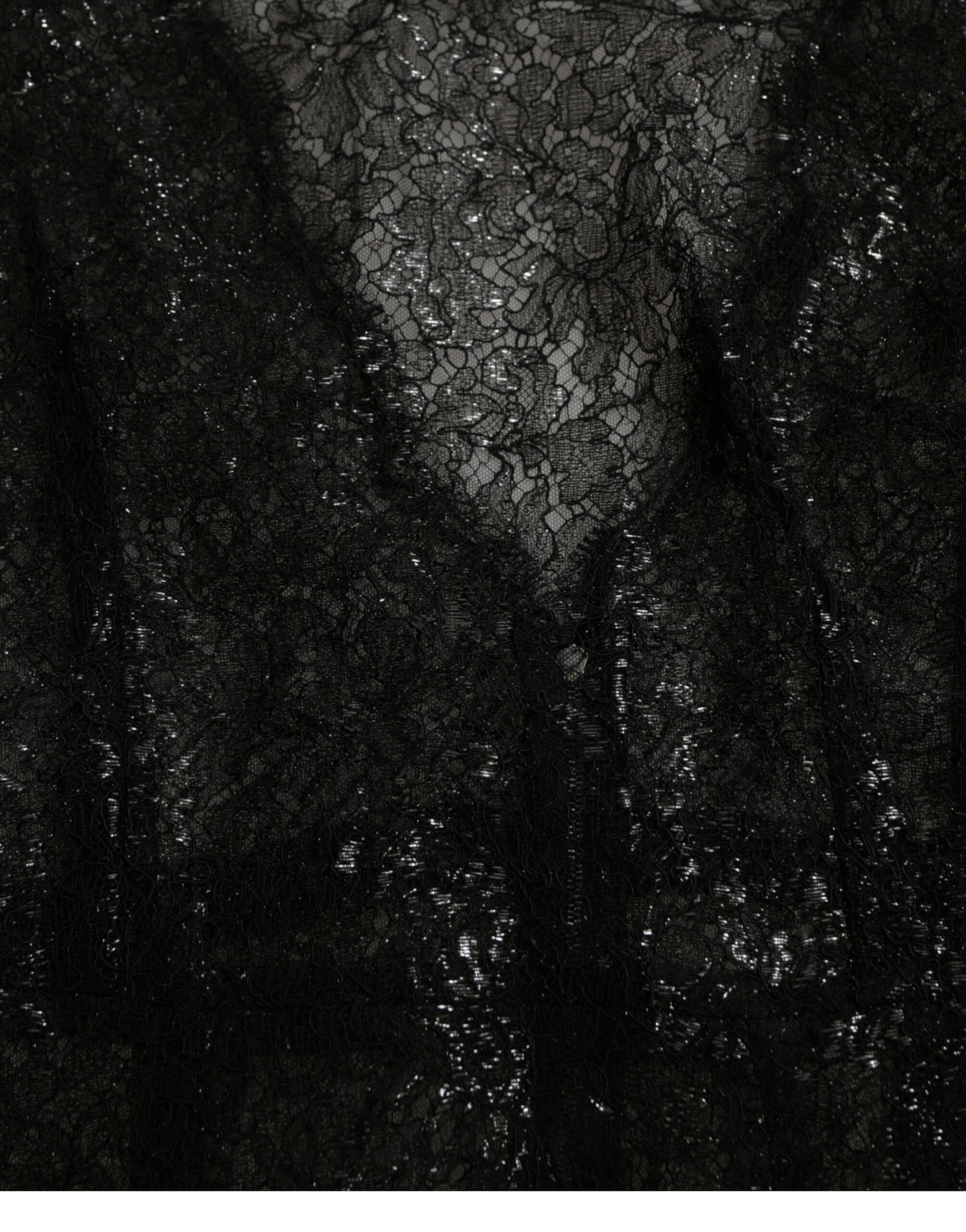 Dolce & Gabbana Black Floral Lace Sheer A-line Midi Dress