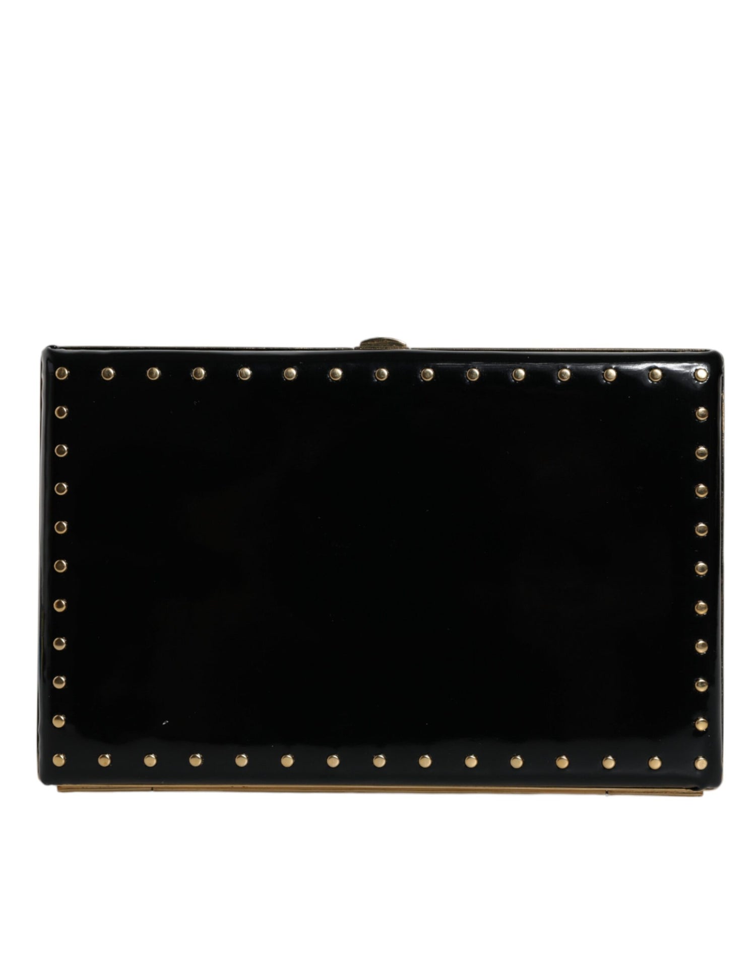 Dolce & Gabbana Black Leather Studs Gold Frame Clutch Evening Purse Bag