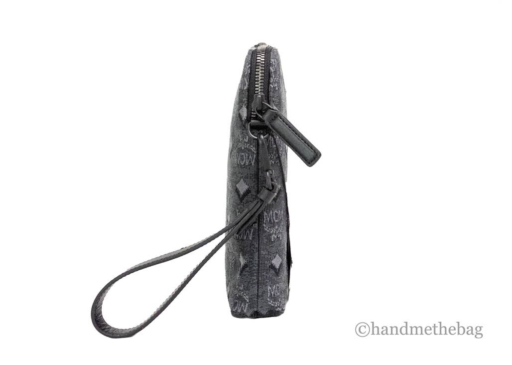 MCM Veritas Medium Dark Grey Denim Monogram Logo Canvas Clutch Pouch Handbag