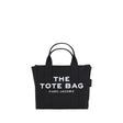 Cotton The small Tote Handbag by Marc Jacobs, two rigid tubular top handles, top zipper closure, single interior pocket, adjustable and removable flat shoulder strap, contrasting jacquard print iconic brand monogram on front, contrasting patch with iconic brand monogram applied on back.