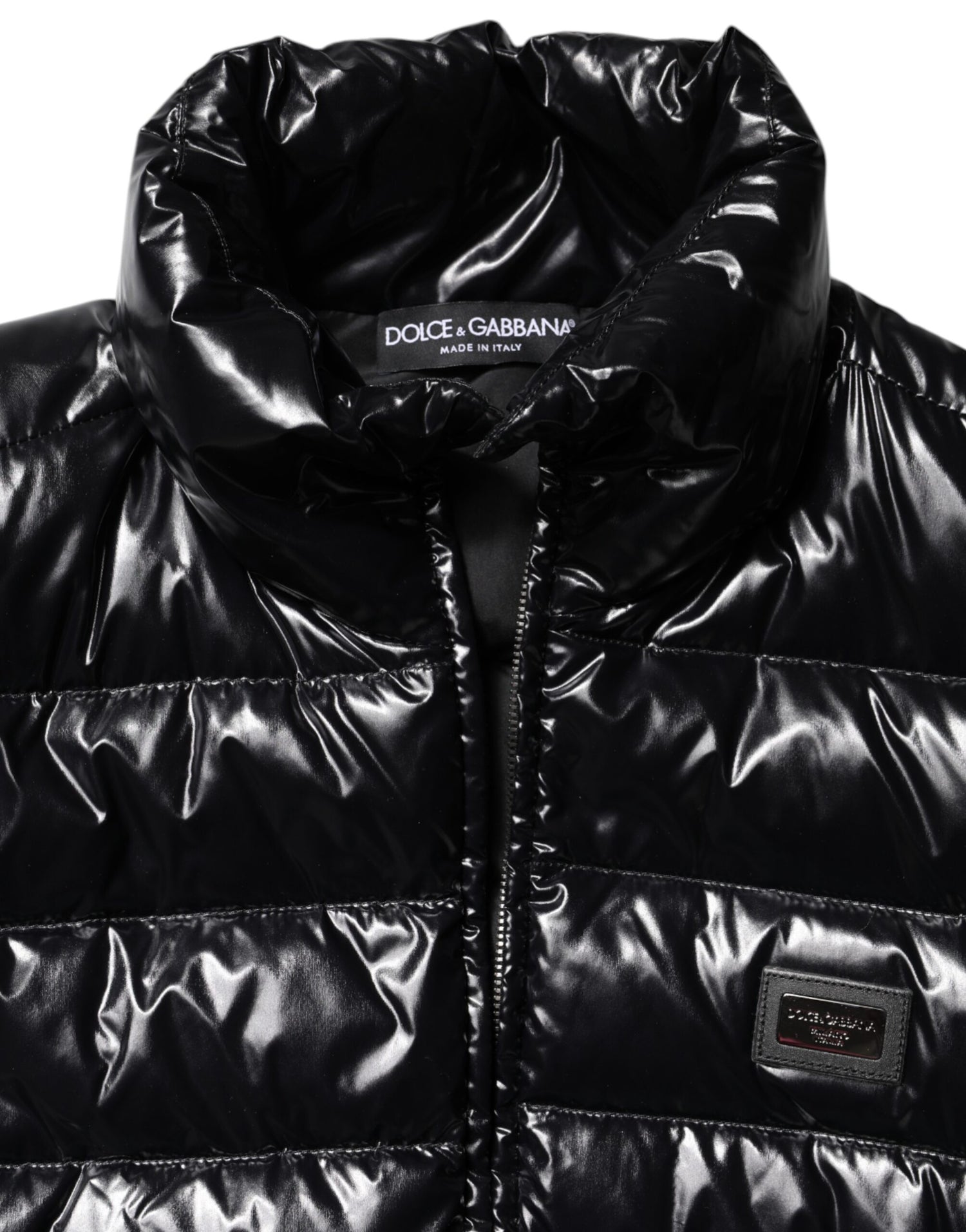 Dolce & Gabbana Black Logo Plaque Full Zip Puffer Jacket