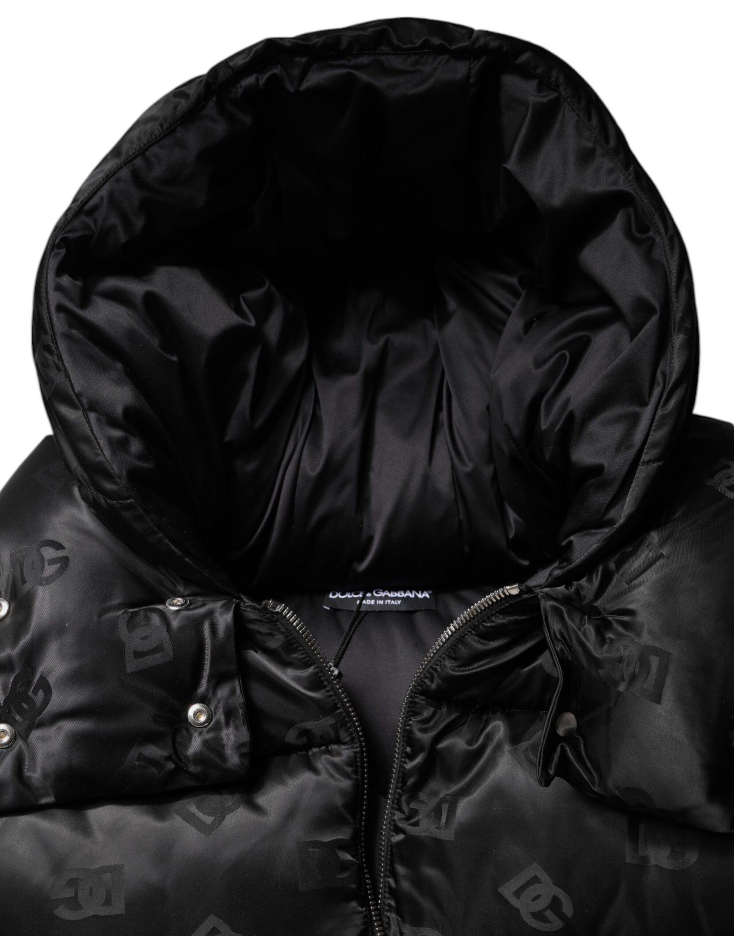 Dolce & Gabbana Black Padded Puffer Hooded Full Zip Cropped Jacket