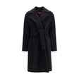 The Scire coat by Max Mara Studio is an elegant take on the timeless wrap silhouette. Crafted from luxurious pure wool beaver, it features a straight, fluid line that enhances the feminine shape. The design includes a classic notched lapel, long kimono sleeves, and a matching belt to cinch the waist. Side welt pockets and refined hand-stitched detailing highlight its exquisite craftsmanship. A sophisticated and timeless coat, perfect for facing the colder months with effortless elegance.