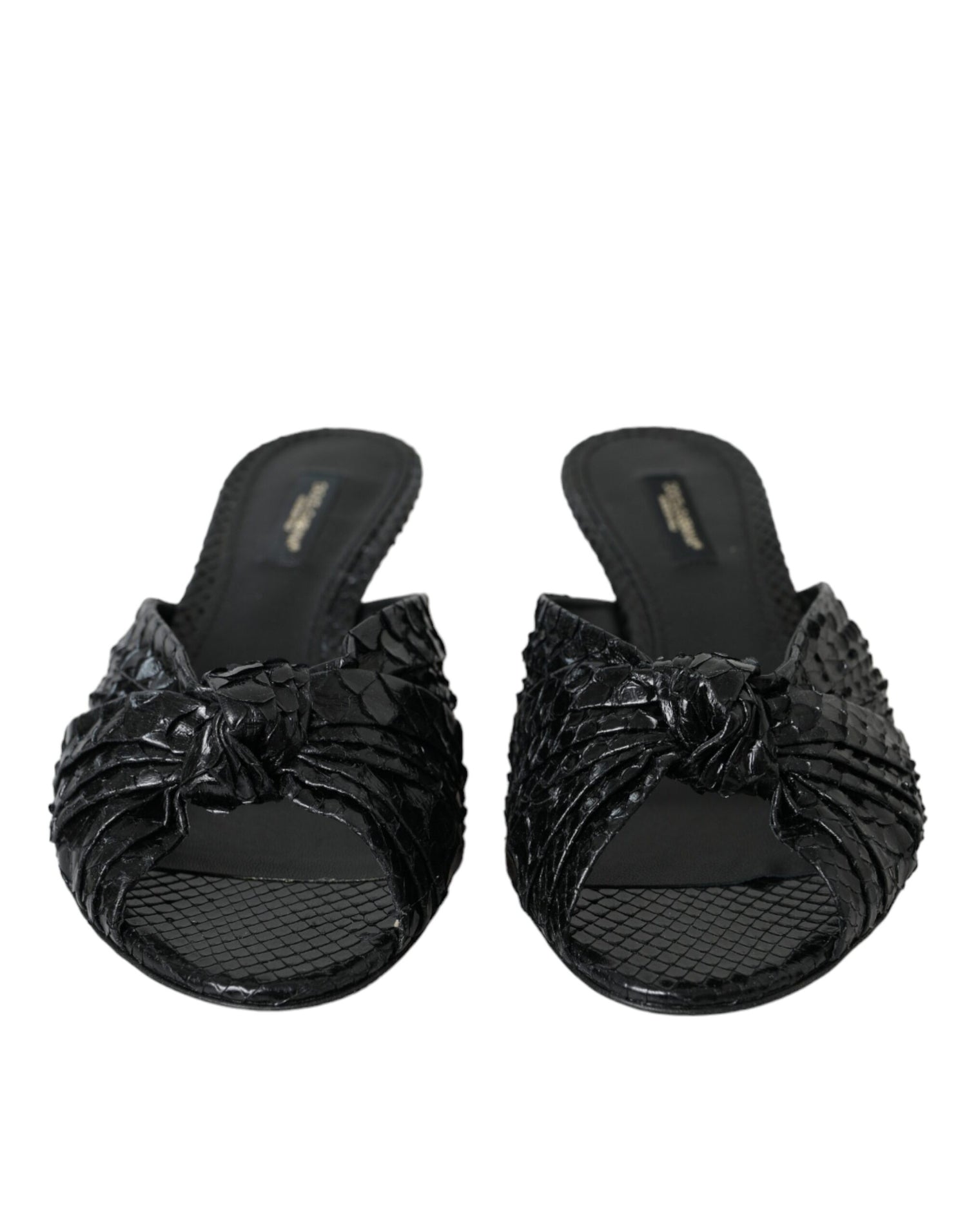Dolce & Gabbana Black Exotic Leather Heels Slides Shoes