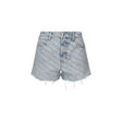 Denim Shorts by Alexander Wang, featuring a zipper and button fastening, belt loops, a five pocket design, a washed out effect, a contrasting repeating logo across the body, a logo patch at the rear and a ripped hem.