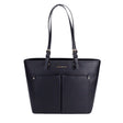 With an ample size of 14.5 inches in width, 10.25 inches in height, and a depth of 6.75 inches, it offers plenty of space for your essentials while maintaining a sleek silhouette. The double handles provide a comfortable grip, with a chic black leather finish that complements the overall aesthetic of the bag. The thoughtful design features a zip closure to keep your belongings secure, along with multiple pockets that help you stay organized on the go.