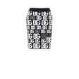 Black Jersey Miniskirt with Allover Dolce & Gabbana Print. Stretch fabric, black hem with contrasting DG print, black elastic waistband, and half-zip back closure.