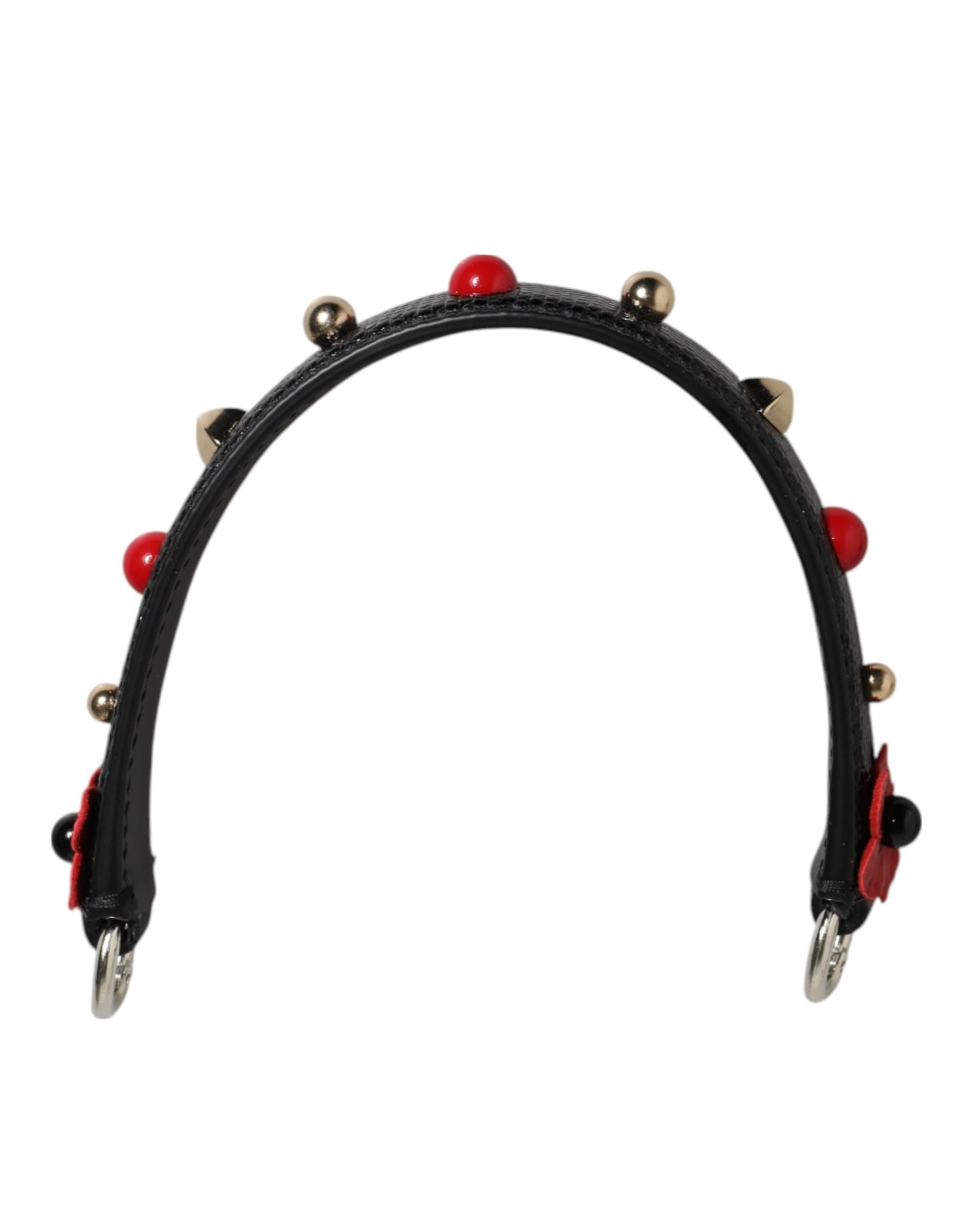 Dolce & Gabbana Black Embellished Leather Bag Handle Women Shoulder Strap