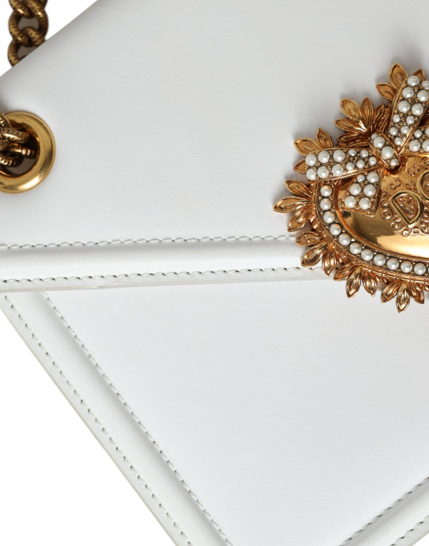 Dolce & Gabbana White DEVOTION Heart Leather Shoulder Women Bag - Women's