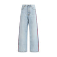 The Tricolor Stripe Baggy Jeans by Fiorucci stand out with bold red, white and blue stripes running along the outer seams. Featuring a mid-rise baggy silhouette, 5-pocket construction, waistband with belt loops and button fly closure, they are crafted from premium non-stretch denim, blending bold character with contemporary style.