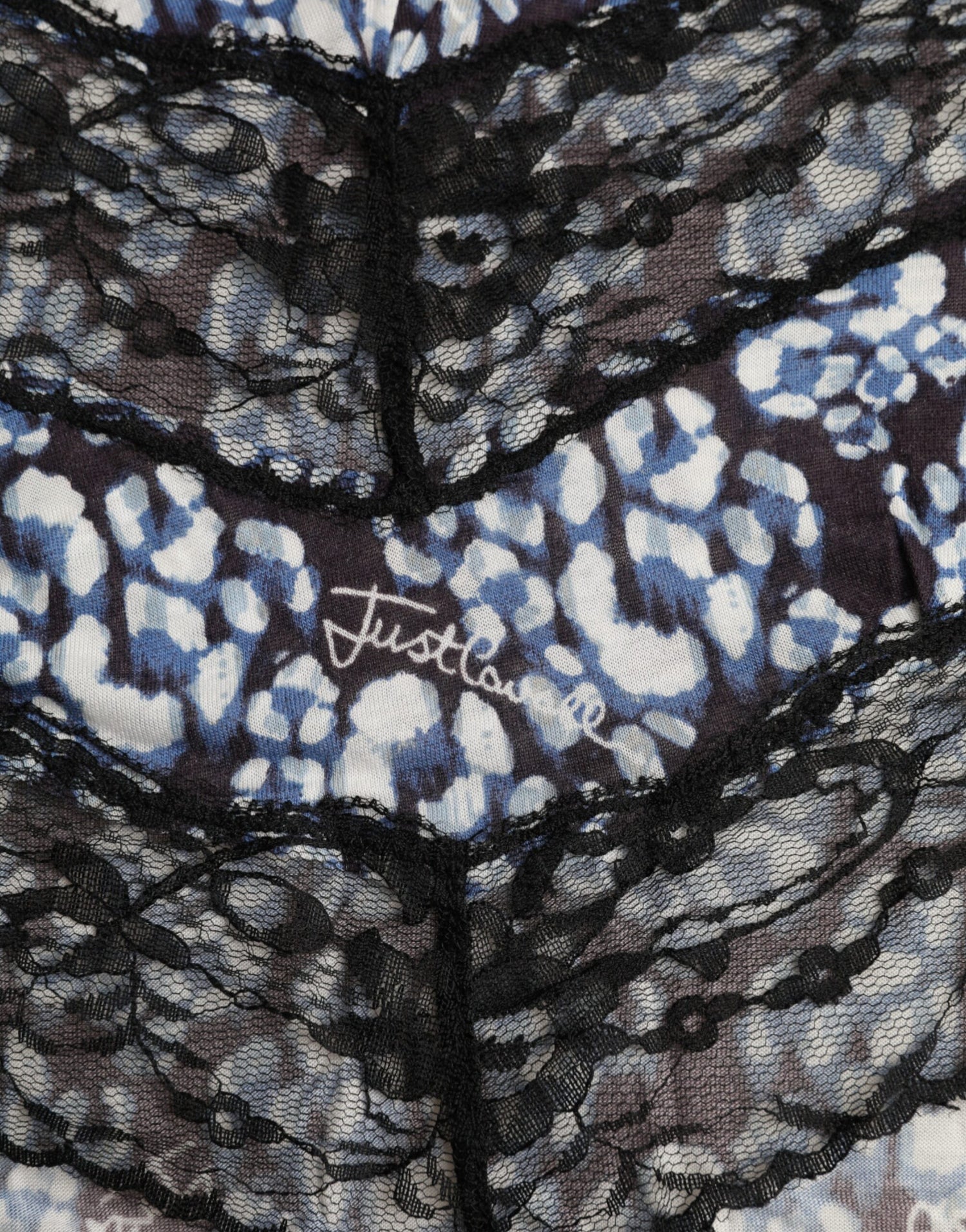 Just Cavalli Blue Floral Lace Long Sleeves Top Underwear Blouse