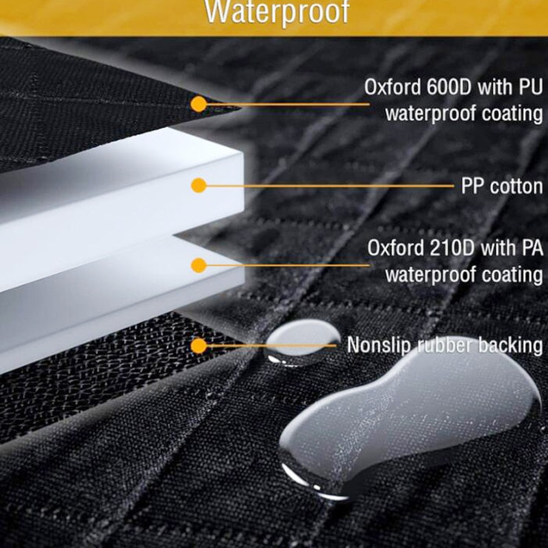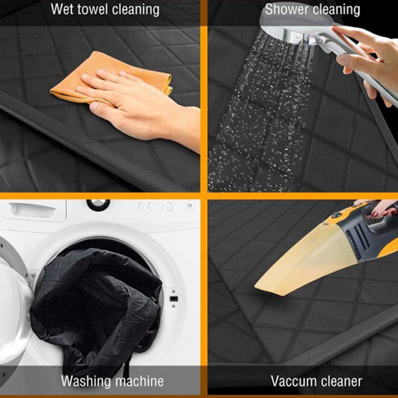 Halten Sie Ihr Auto sauber, während Sie Ihren pelzigen Freund transportieren, mit dieser Haustier-Heckmatte! Diese Matte besteht aus strapazierfähigem Oxford-Stoff und ist mit weicher Baumwolle gefüttert. Sie verhindert, dass Haare und Schmutz auf Ihre Sitze gelangen. Die Netzrückseite verhindert ein Verrutschen und die wasserdichte PVC-Beschichtung verhindert, dass Unfälle durchsickern. Befestigen Sie diese Matte einfach mit den mitgelieferten Druckknöpfen an Ihrem Autosicherheitsgurt, und wenn Sie sie nicht mehr benötigen, verstauen Sie sie einfach mit dem Reißverschluss in der eigenen Tasche im Taschenformat.