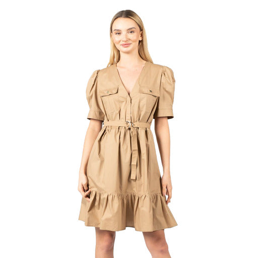 Pinko Short Cotton Dress Beige - Women's