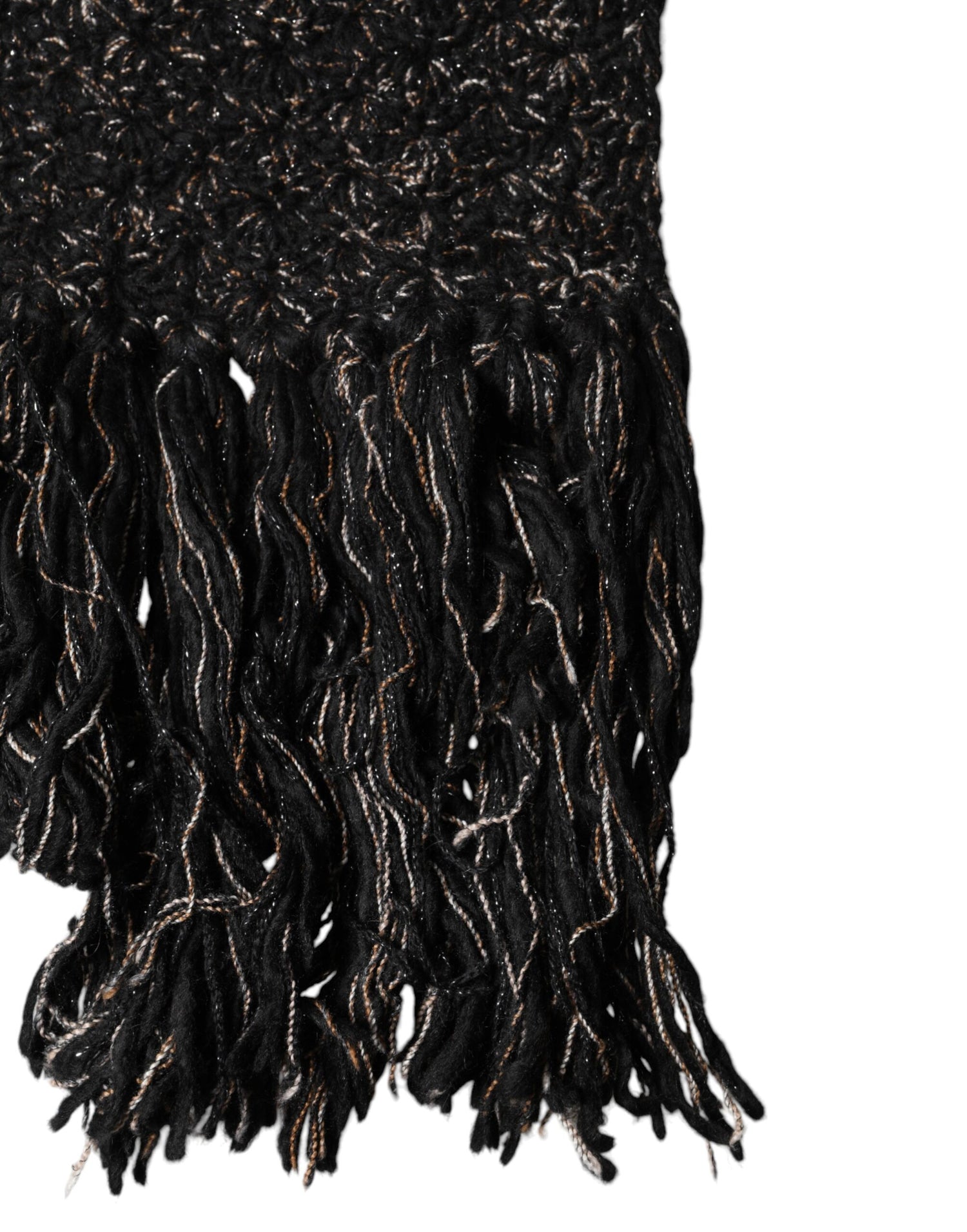 Dolce & Gabbana Black Wool Fringes Neck Wrap Foulard Scarf