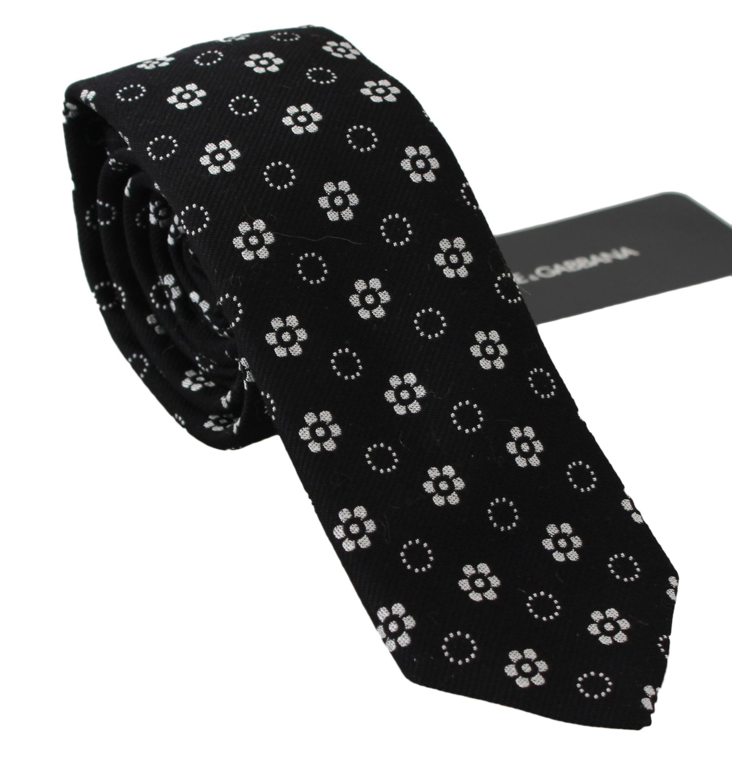 Dolce & Gabbana Black 100% Silk Floral Print Print Classic Tie