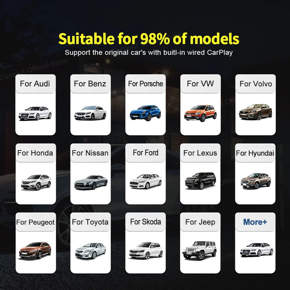 The CarlinKit product makes wireless CarPlay more easy! super convenient to convert wired CarPlay to wireless CarPlay,say goodbye to data cable connection, wireless transmission brings a more convenient connection experience. Connects seamlessly to your iPhone every time you get in the car, make your driving life more easier.