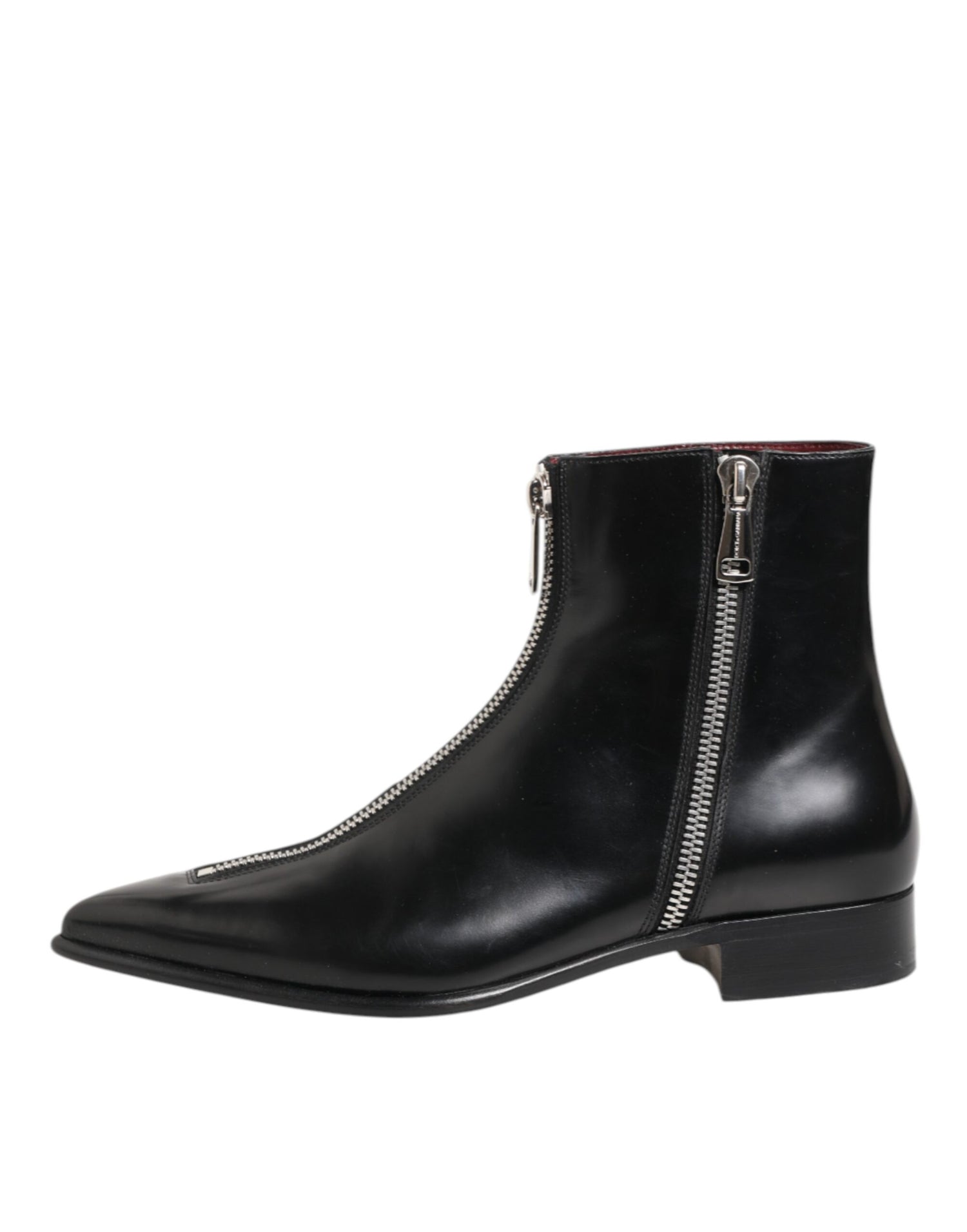 Dolce & Gabbana Black Leather Chelsea Short Ankle Boots Shoes