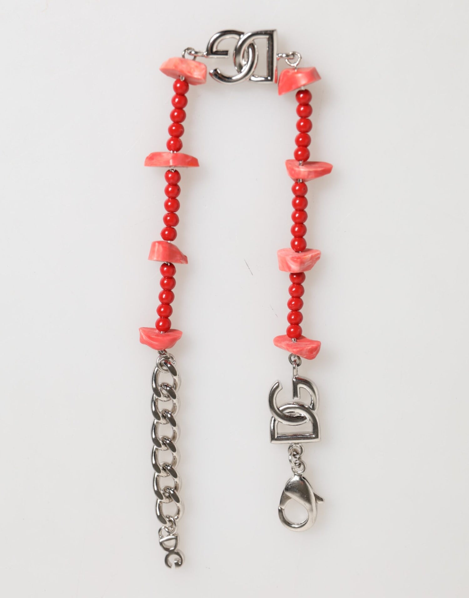 Dolce & Gabbana Silver Tone Brass Beaded Resin DG Logo Chain Men Bracelet