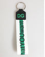 Dolce & Gabbana Green Logo Polyester Silver Brass Holder Keychain Keyring