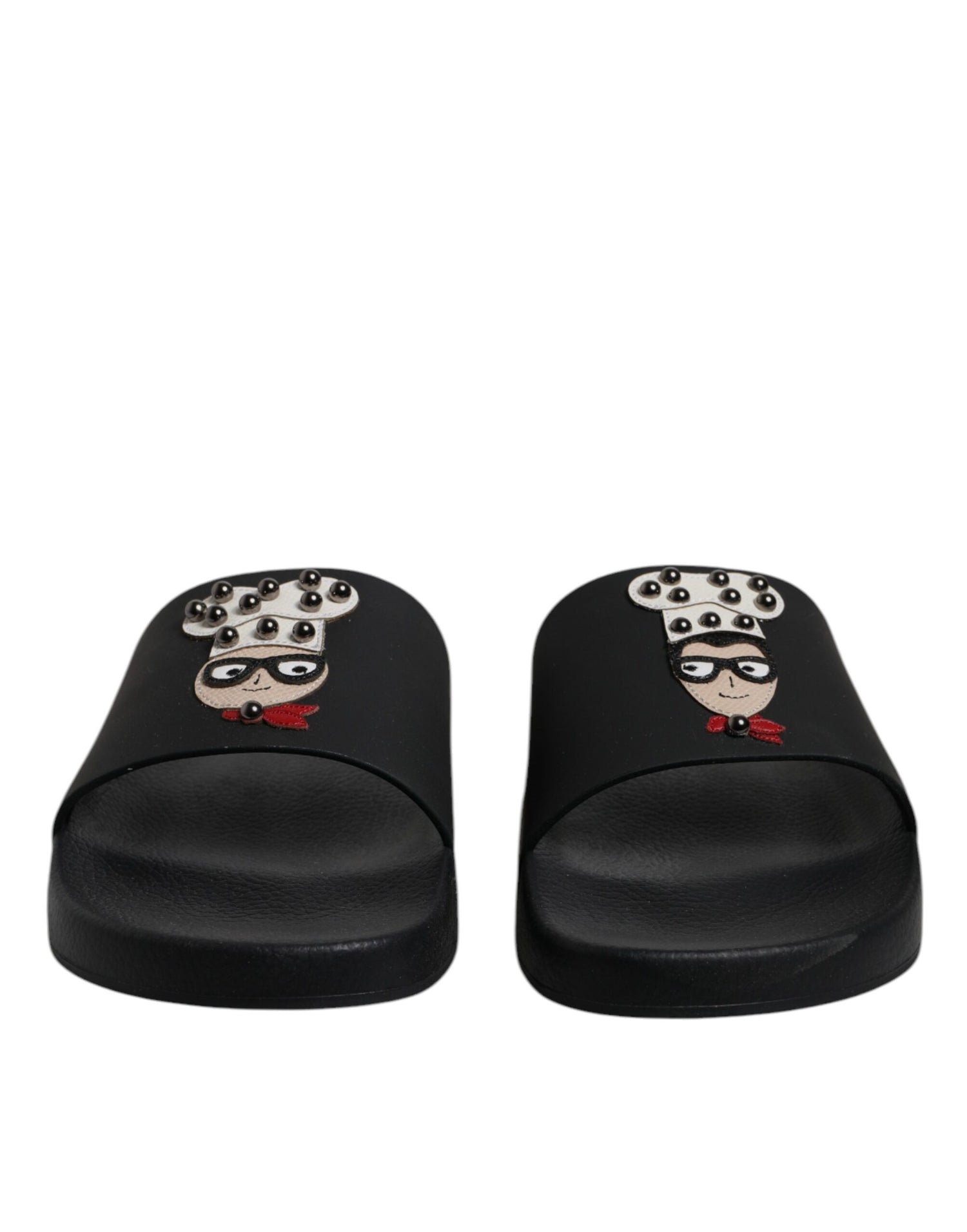 Dolce & Gabbana Black Leather Slides Sandals Beachwear Shoes