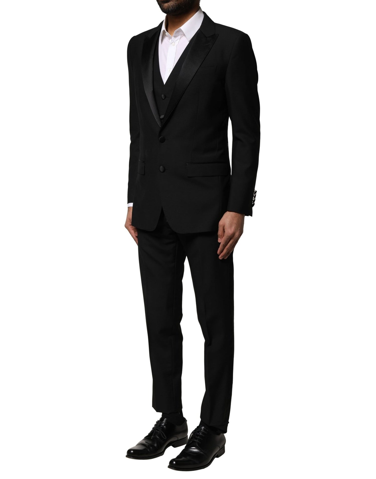 Dolce & Gabbana Black Wool 3 Piece Single Breasted Suit