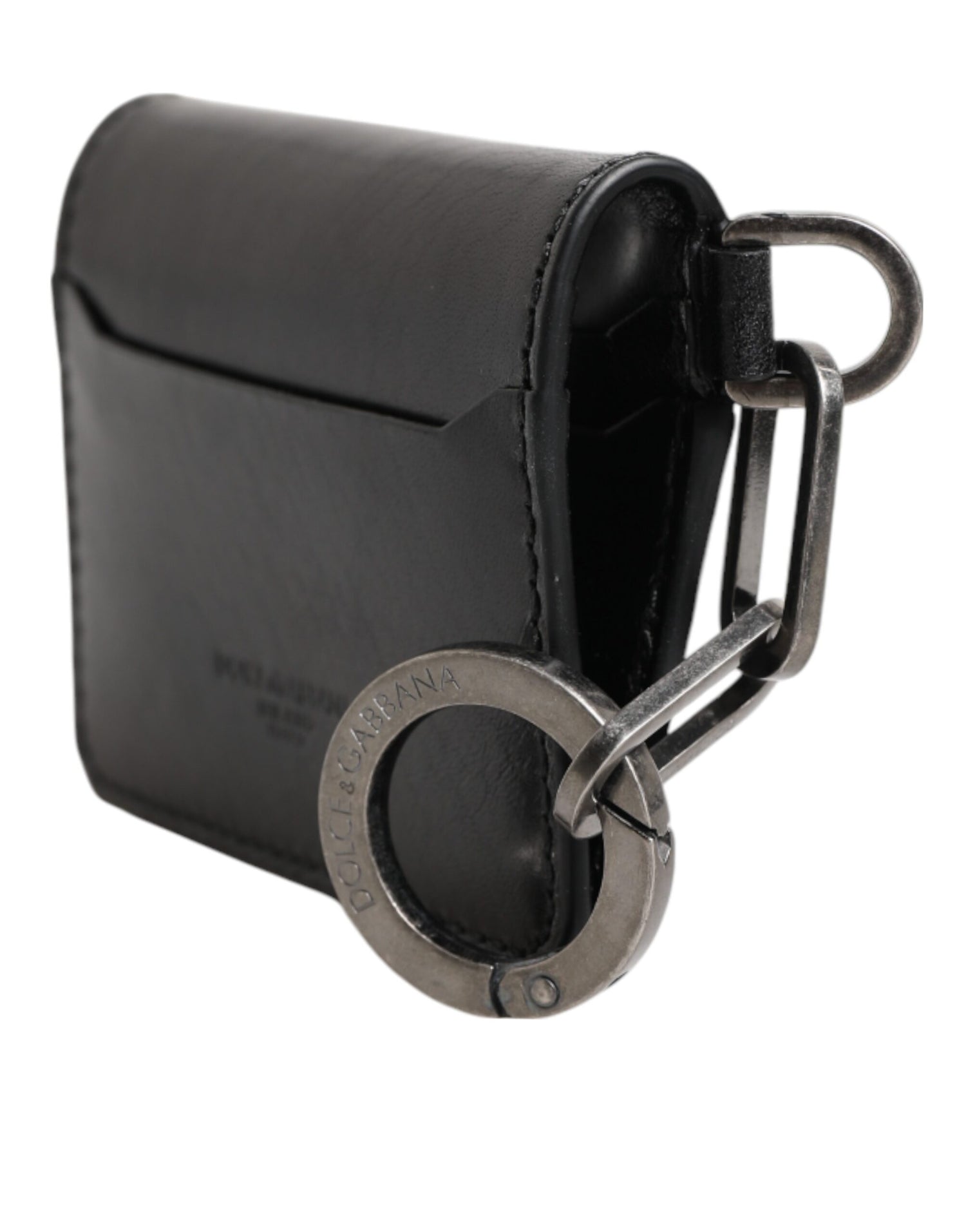 Dolce & Gabbana Wallet Black Leather Logo Embossed Key Chain Card Holder Wallet