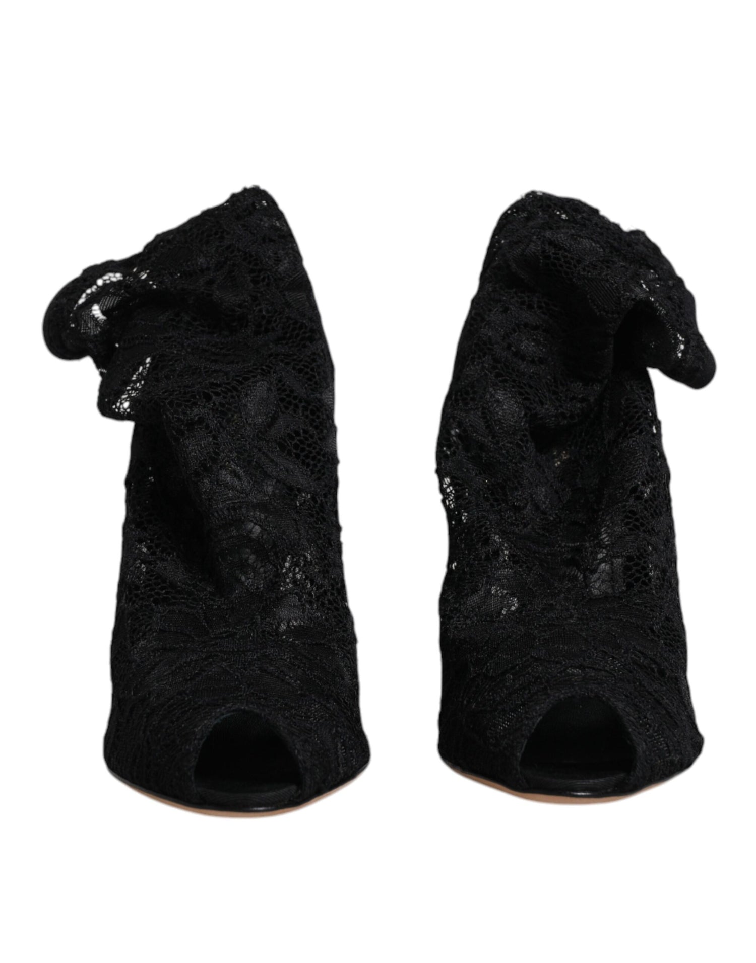 Dolce & Gabbana Black Lace Stretch Heels Mid Calf Boots Shoes