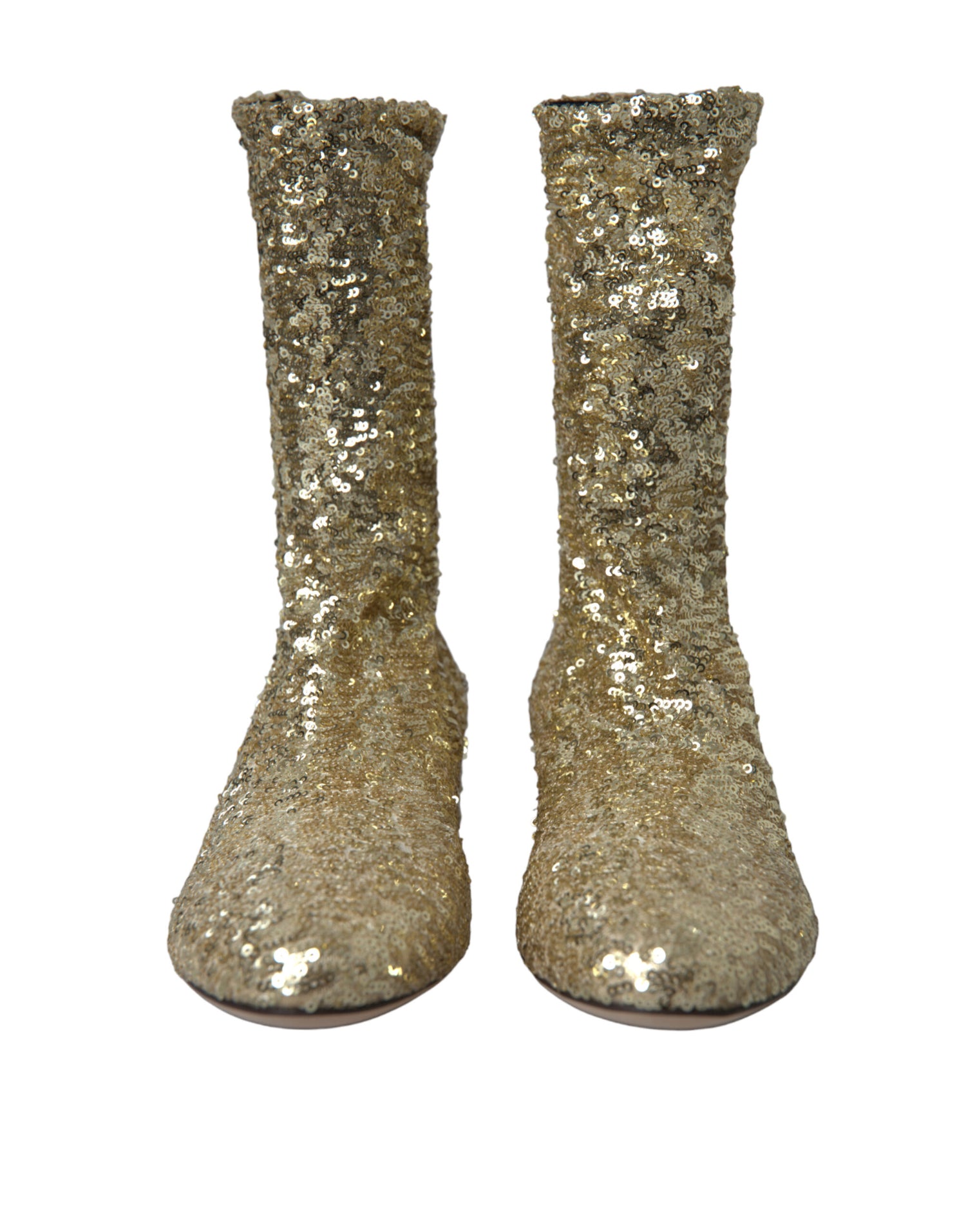 Dolce & Gabbana Gold Sequined Short Boots Stretch Shoes