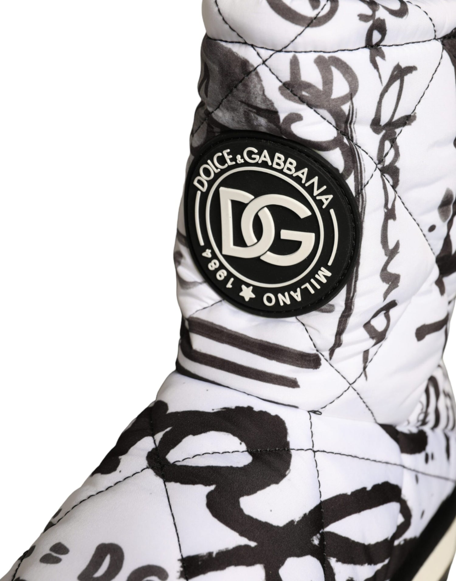 Dolce & Gabbana White Padded Logo Print Mid Calf Boots Shoes