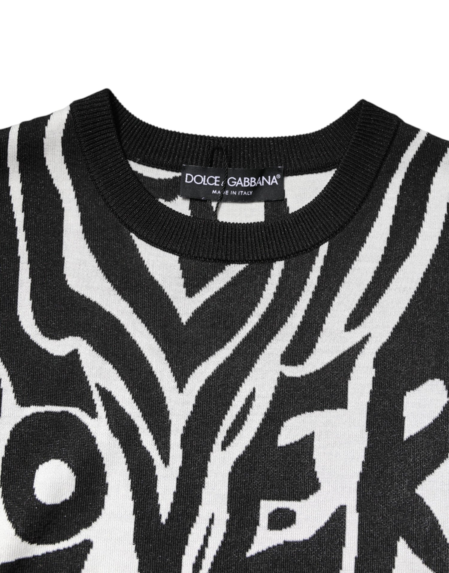Dolce & Gabbana Black White Print Women Pullover Sweater