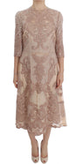 Dolce & Gabbana Pink Silk Lace Ricamo Shift Gown Dress
