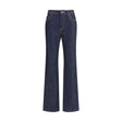 The dark blue Denim Jeans feature a straight leg and a five-pocket design with contrast stitching. Finished with belt loops and a front zip and button closure, they combine classic style with functionality