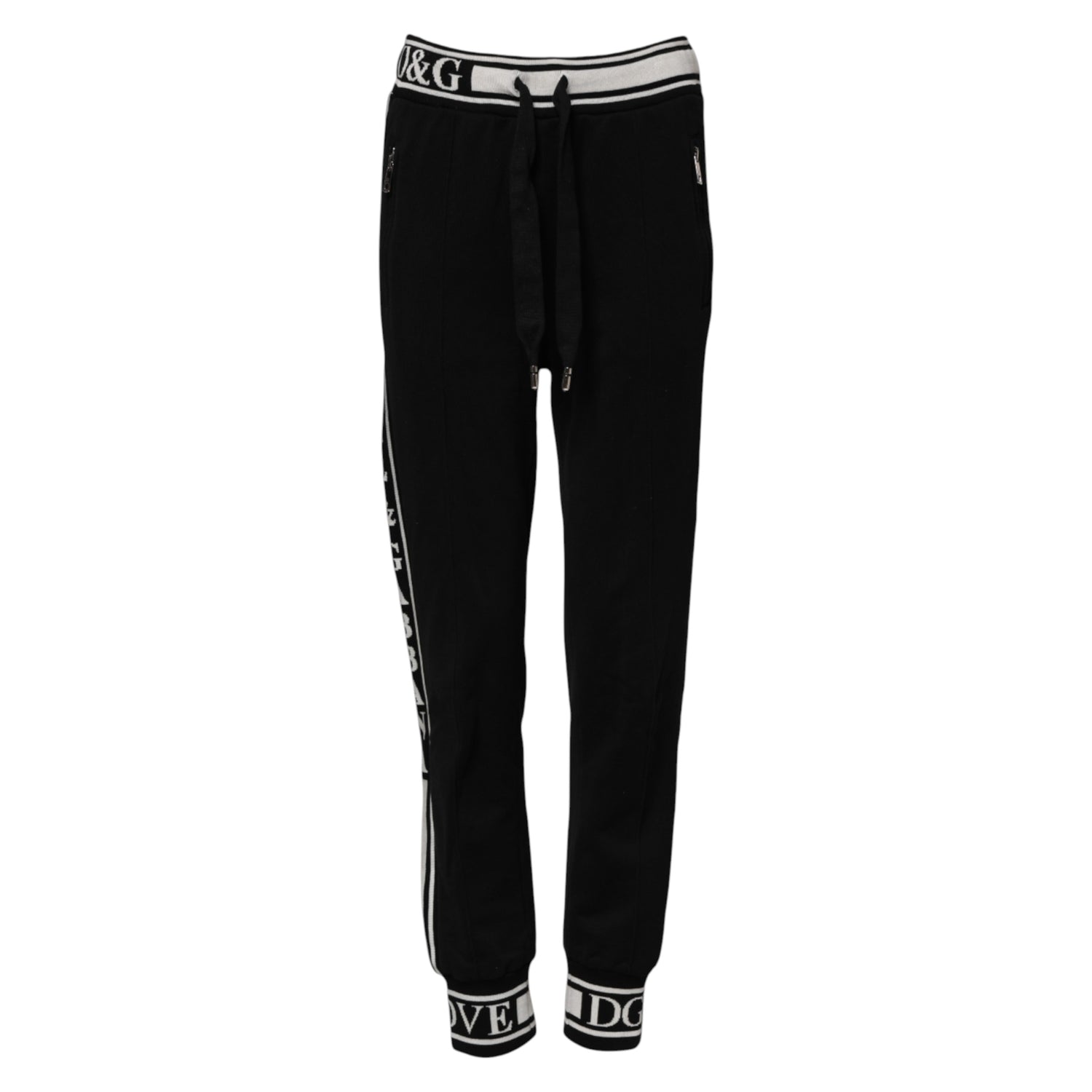 Dolce & Gabbana Black Cotton Jogger Logo Waist Pants