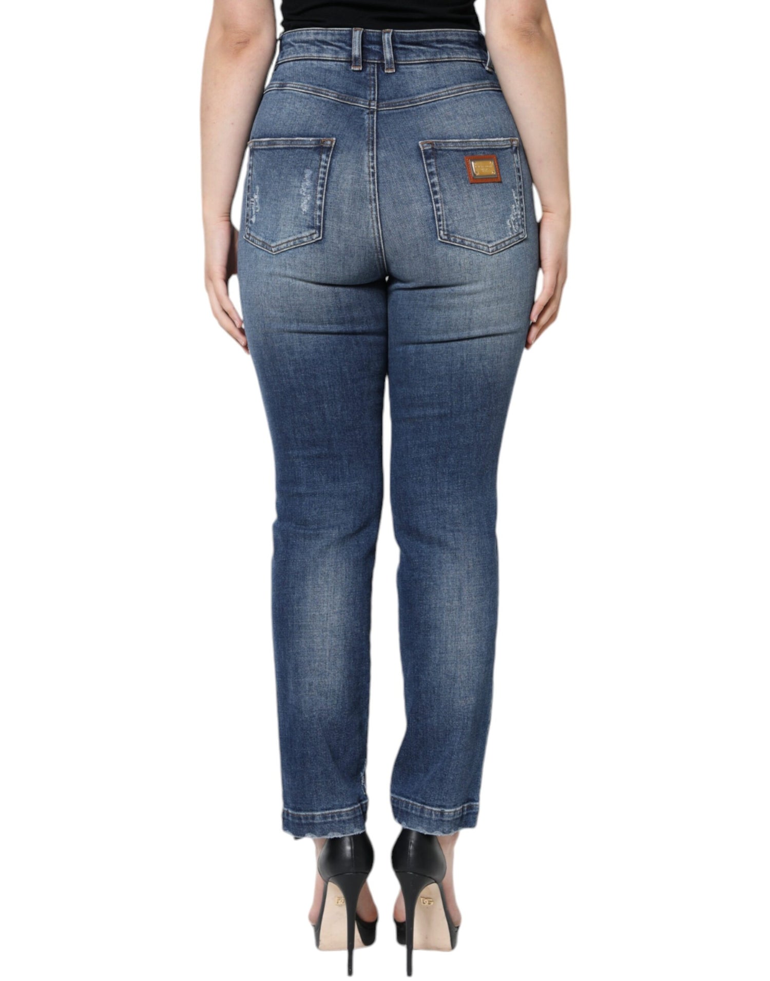 Dolce & Gabbana Dark Blue Cotton Tattered Skinny Denim Jeans