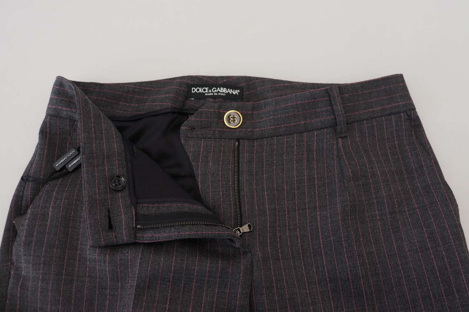 Dolce & Gabbana Gray Stripes Wool Tapered Women Pants