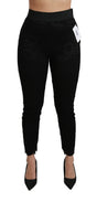 Dolce & Gabbana Black Lace Skinny High Waist Cotton Pants