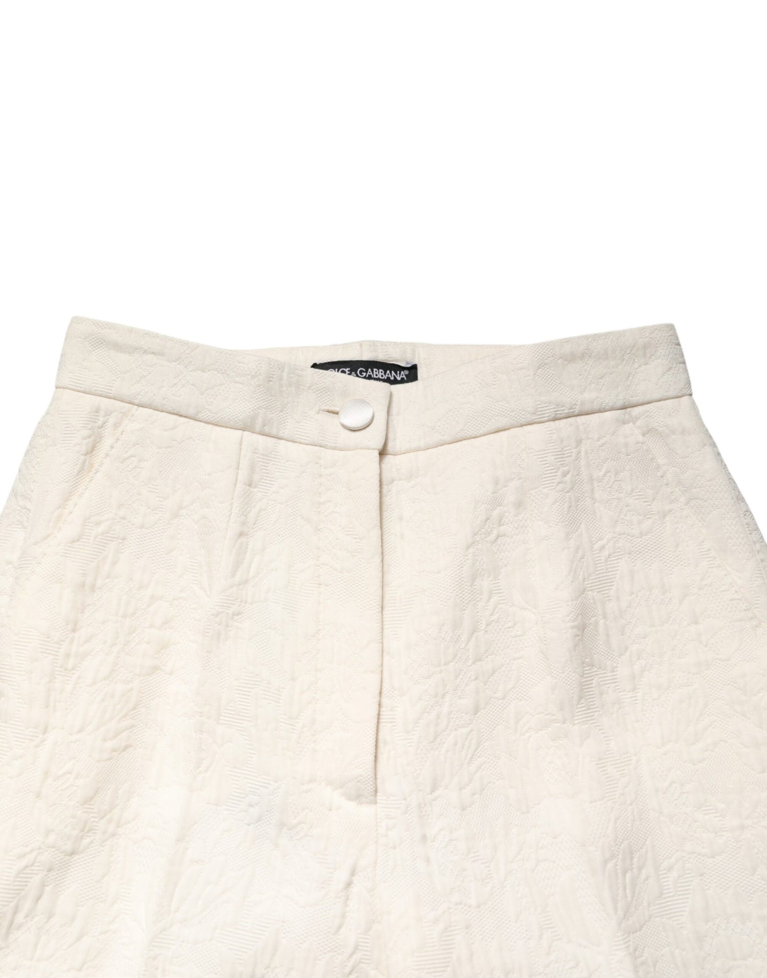 Dolce & Gabbana White Cotton Floral Brocade Dress Pants