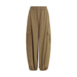 Max Mara’s Glauco Pants are a high-waisted baggy style designed to combine comfort and contemporary style. Made of fluid pure cotton twill, they feature an elasticized waist and ankles for a practical and dynamic fit. The wide leg gives movement to the silhouette, while pockets built into the hips and cargo flap pockets add a utility touch. Completing the design is the discreet yet distinctive Max Mara logo embroidered on the left pocket.