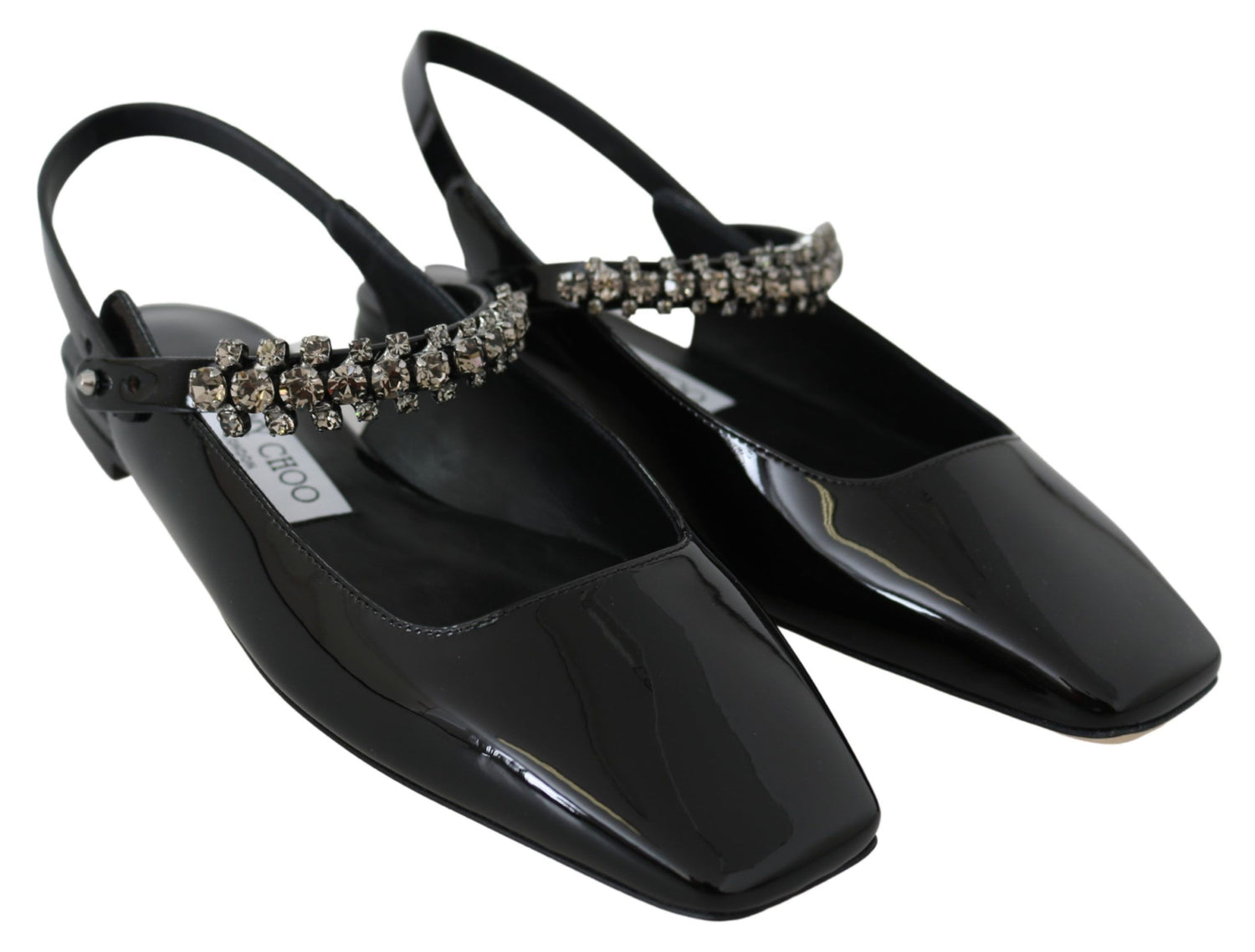 Jimmy Choo Black Patent Leather Mahdis Flat Shoes