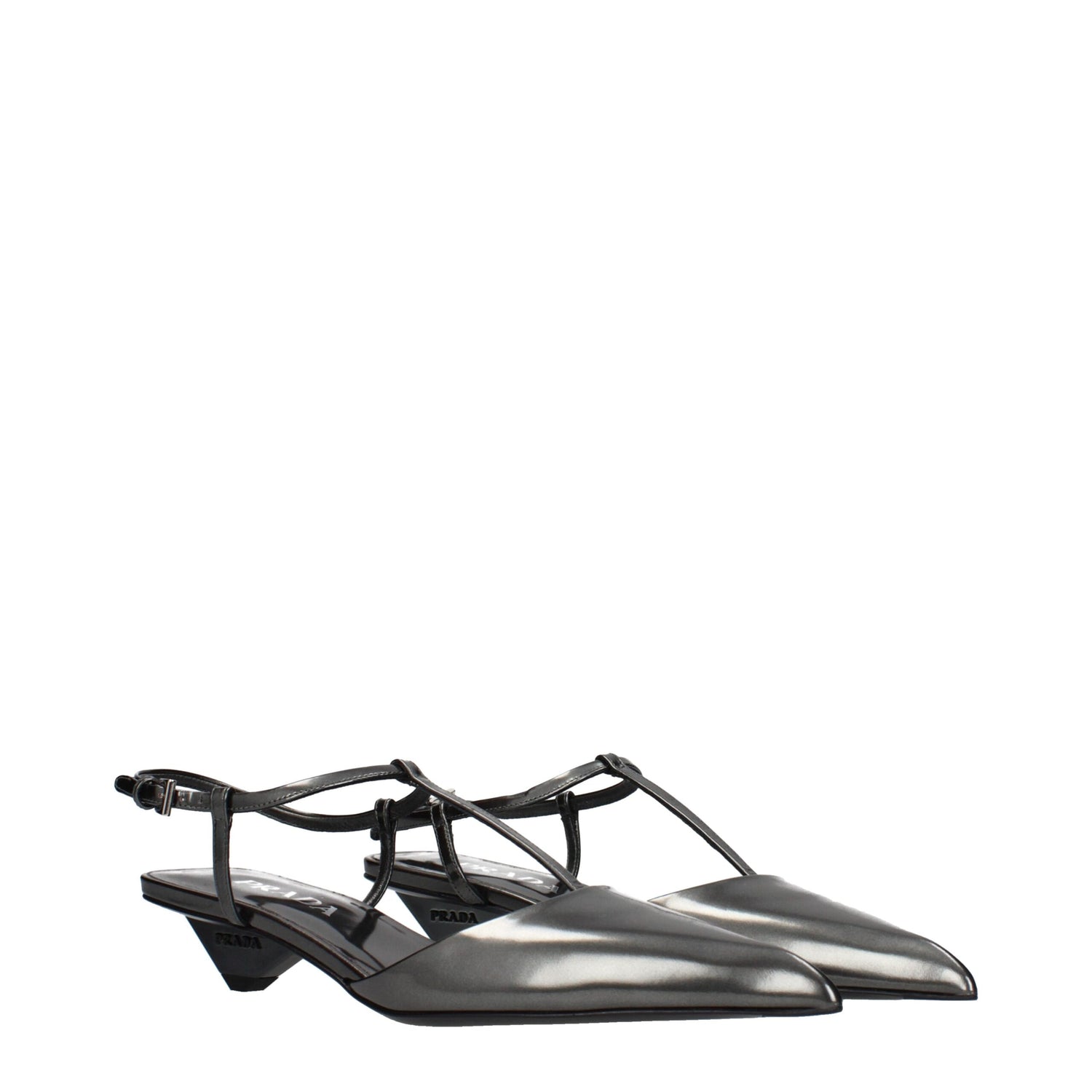 The product with MPN 1I535N3AU1035F0308 and code F85466 leather in gray is a sandals designed by Prada. It has features like metallic effect.
